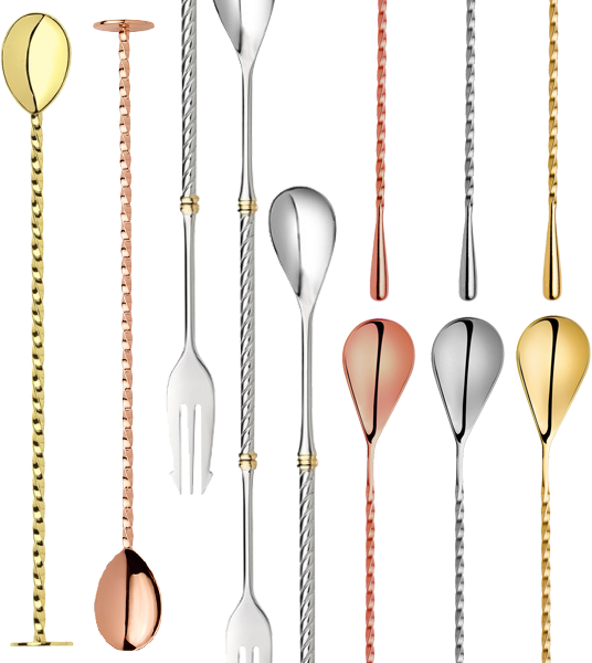 Bar Spoon/ Cuillère à mélange Pilon Lumian : classique cuillère à mélange en acier inox 18/10 longue 28 cm. Disponible en 5 modèles de placage...