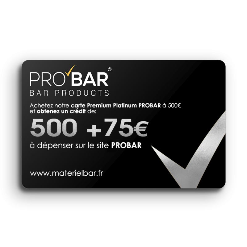 *Les cartes Premium PROBAR peuvent être utilisées pour acheter des équipements de bar et des verres, à l'exception des comptoirs de bar, des accessoires de comptoir, des kits Flavour Blaster et d'autres cartes Premium.